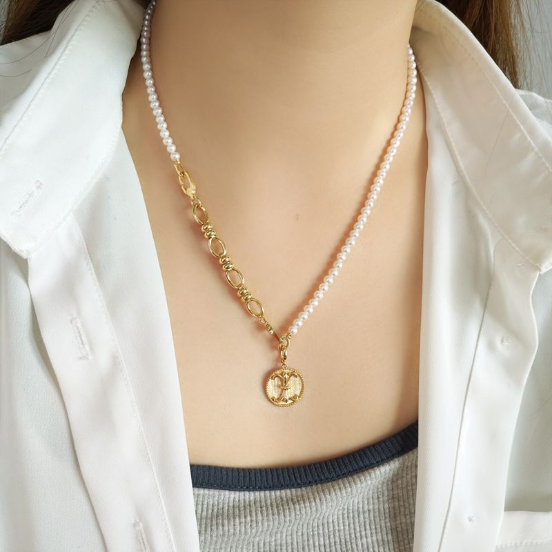 All-match titanium steel hammer square pearl chain with chain DIY jewelry accessories chain stainless steel necklace ladies chain wholesale