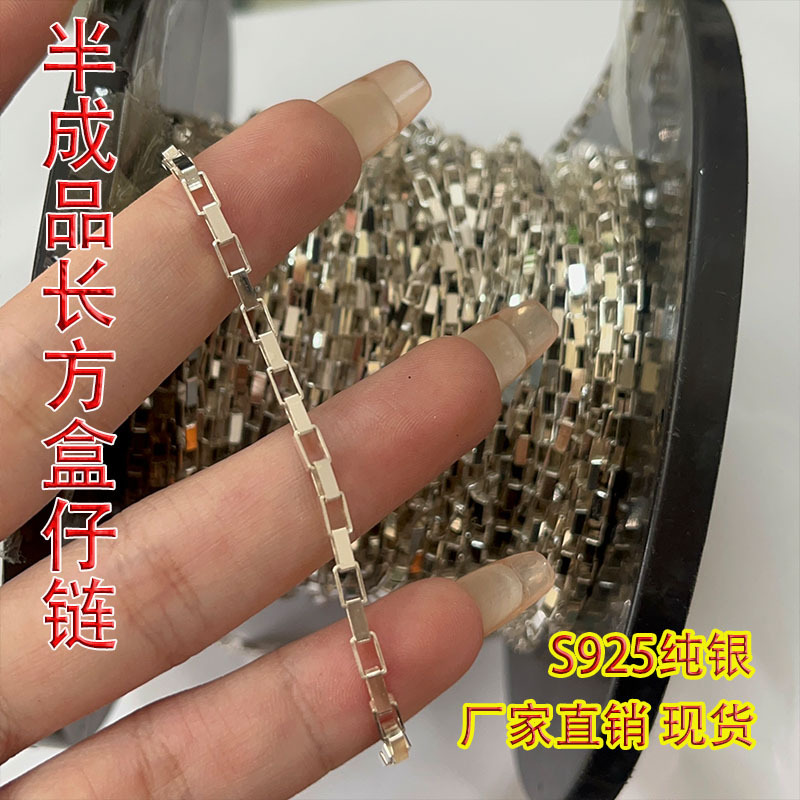 925 sterling silver long plaid chain semi-finished long square box necklace clavicle chain female chain naked chain DIY silver accessories factory