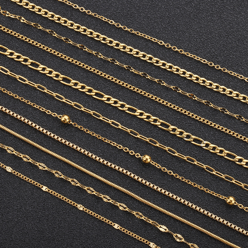18k gold stainless steel base thin chain plain chain ladies necklace clavicle chain DIY jewelry accessories material rice chain