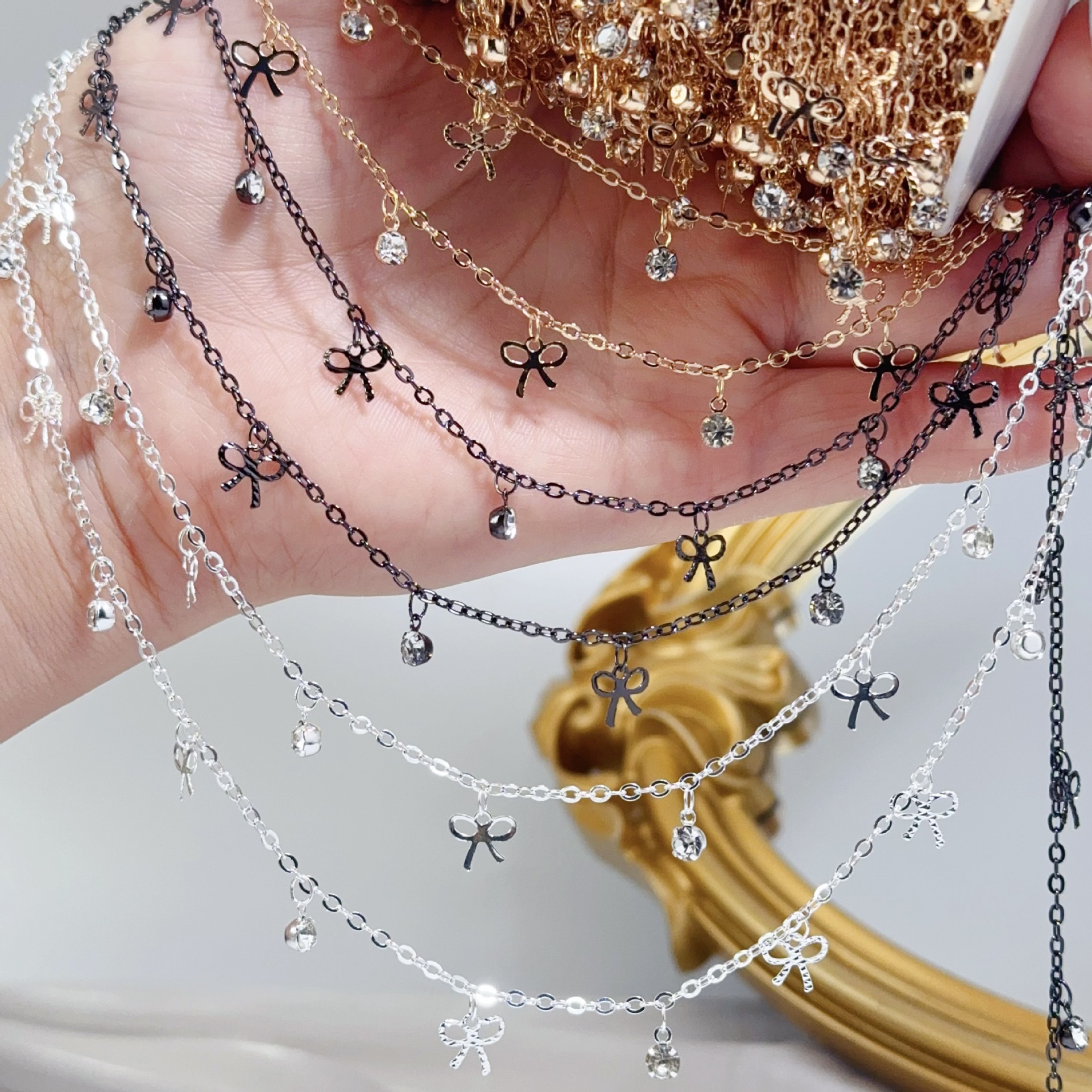 DIY accessories bow rhinone chain color retaining girl heart bow chain necklace bracelet clothing accessories