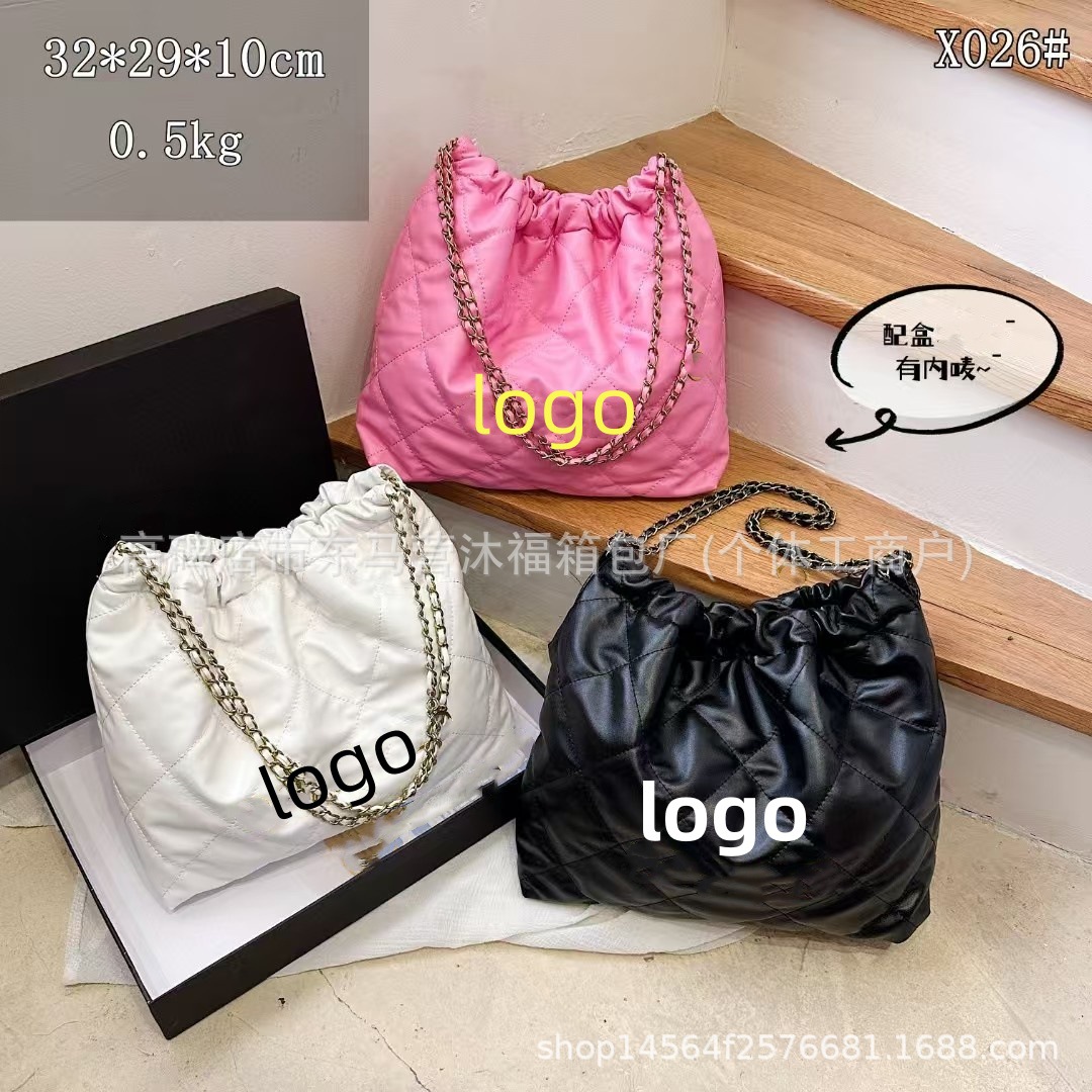 23 Cross-Border New Style Small Fragrant Women's Bag Fashion Embroidery Rhombus Chain Bag Shoulder Crossbody Handheld Bucket Bag Wholesale