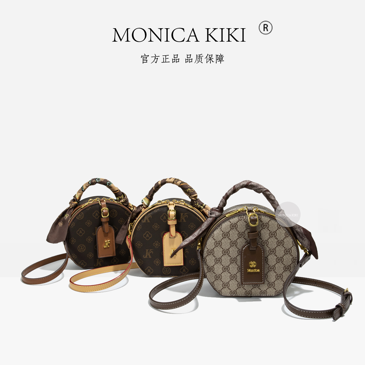 Monica Qiqi Live Online Celebrity Popular Small Round Bag Women's 2025 New Style Elegant Casual Shoulder Bag Color-matching Letters
