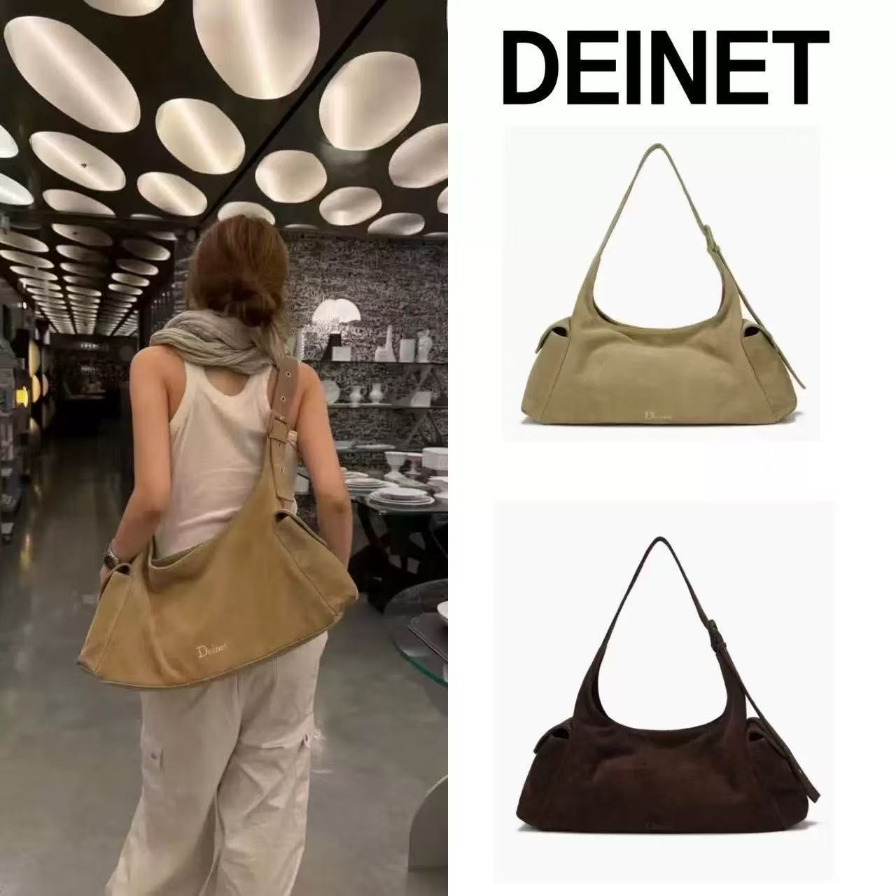 Korean Niche Deinet Bag Women's Autumn and Winter New Maillard Large-Capacity Single Shoulder Diagonal Tote Bag Suede