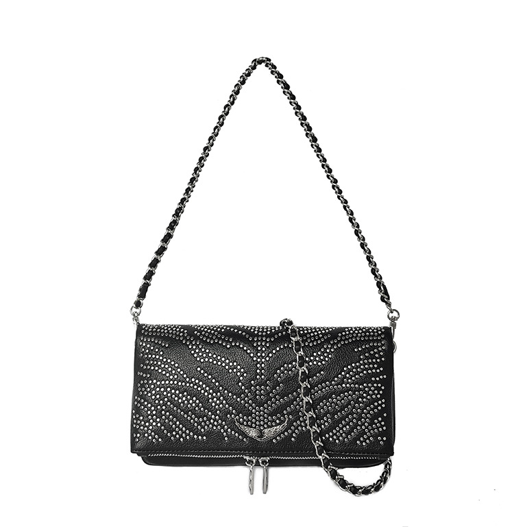 2025 New French Foreign Trade Fashion Zv Bag Diamond Wings Chain Women's Envelope Bag Casual Retro Shoulder Bag