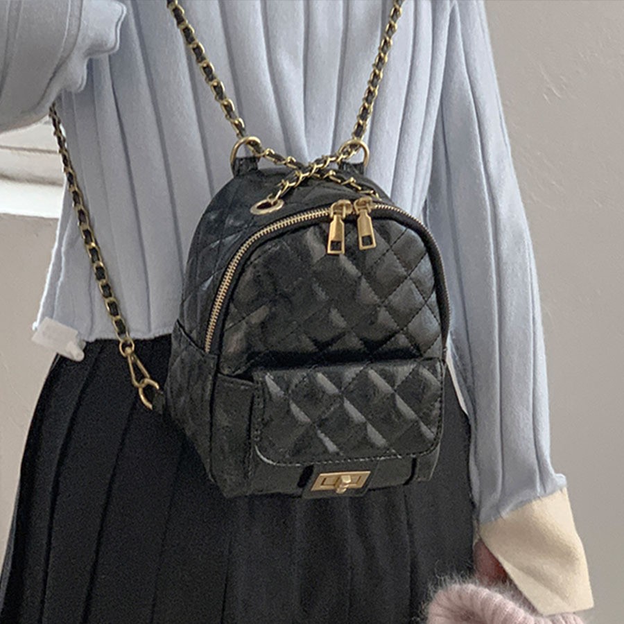 Summer Mini Rhomboid Chain Backpack Women's 2024 New Casual Fashion High-end Mini Small Backpack Schoolbag