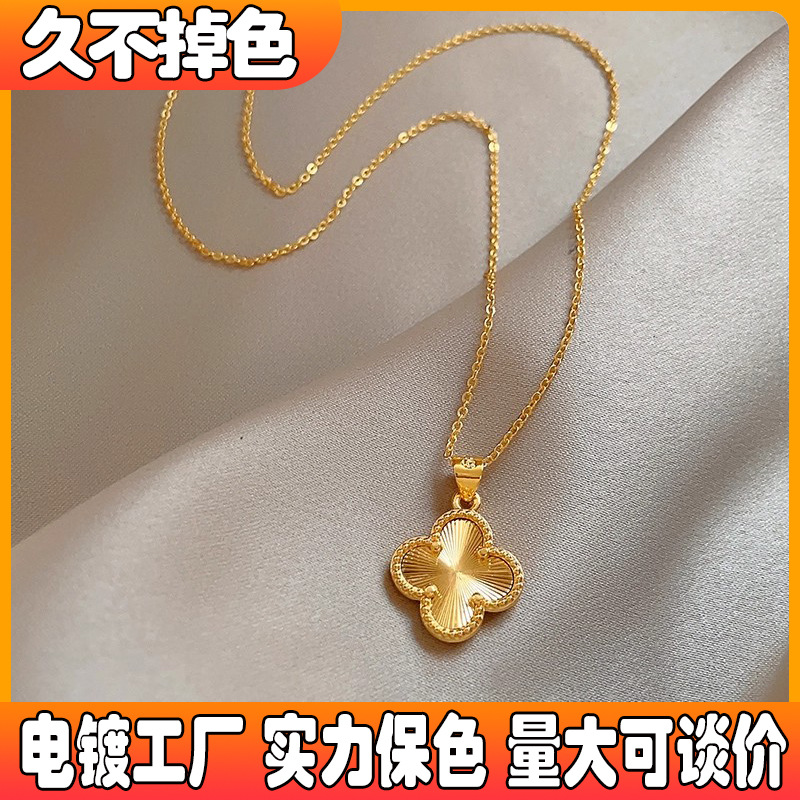 Lucky Necklace Girls' Double-sided 13MM Four-leaf Clover Necklace Titanium Steel 18K Gold Simple Pendant Light Luxury Cyber Celebrity Collarbone