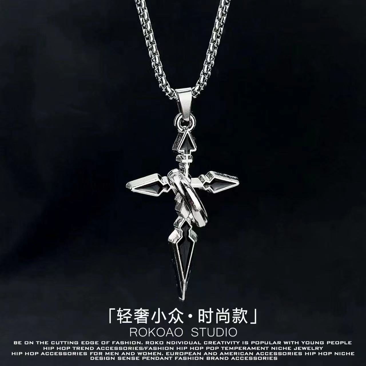 Hot Girl Crowe Antique Silver Cross Necklace Female Japanese and Korean Niche Hip Hop Girly Style Clavicle Chain Necklace Chain Woolen Chain