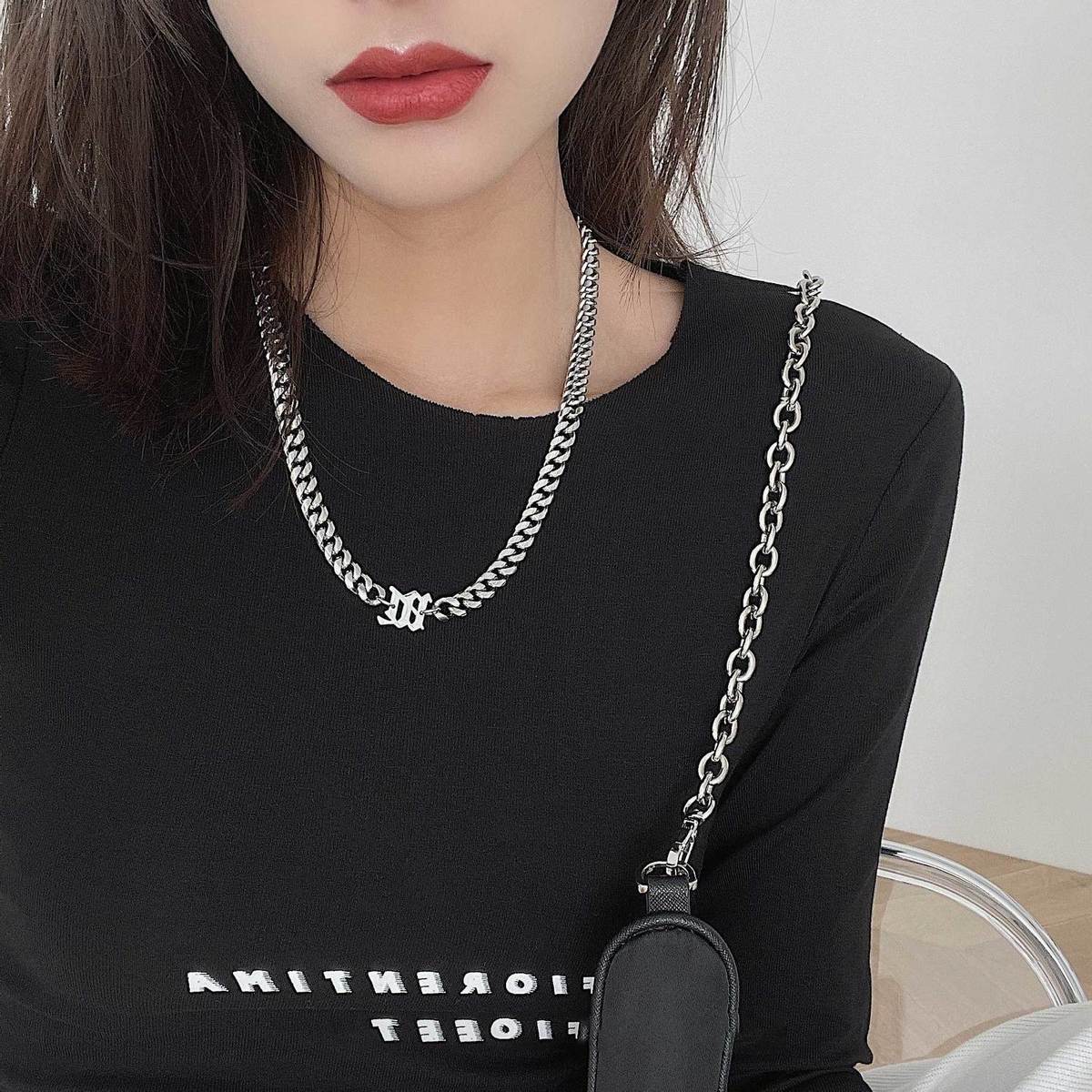 Cool Girl Thick Chain Cuban Chain Short Necklace Women's M Letters Men's and Women's Metal Trendy Hip Hop Tie Chain