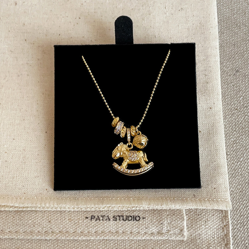 Gold Zircon Rocking Horse Pendant Necklace for Women, Light Luxury, Unique Style, Fashionable and Versatile Choker Sweater Chain