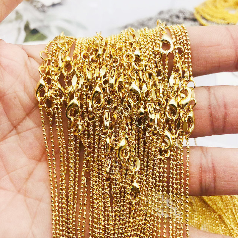 Copper Plated 18K Gold Necklace Women's Fine Bead Chain Bead Chain Color Plated Gold Necklace Fashion Flash Bead Chain Necklace Simple Chain