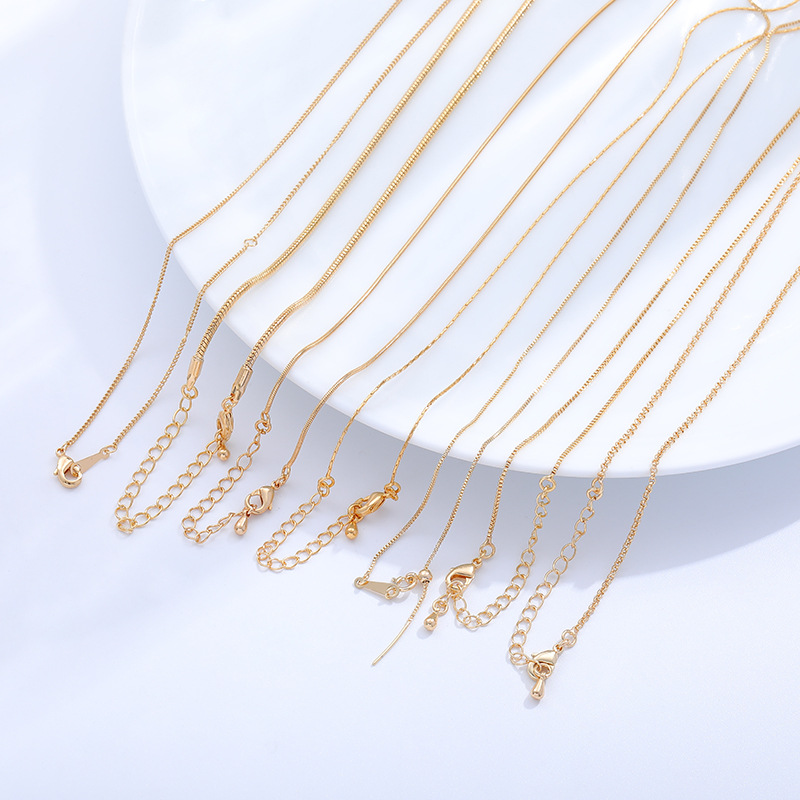 DIY Jewelry Pearl Necklace Wholesale Copper Snake Bone Chain Box Chain Color-Preserving 18K Real Gold Clavicle Chain Thin Chain for Women