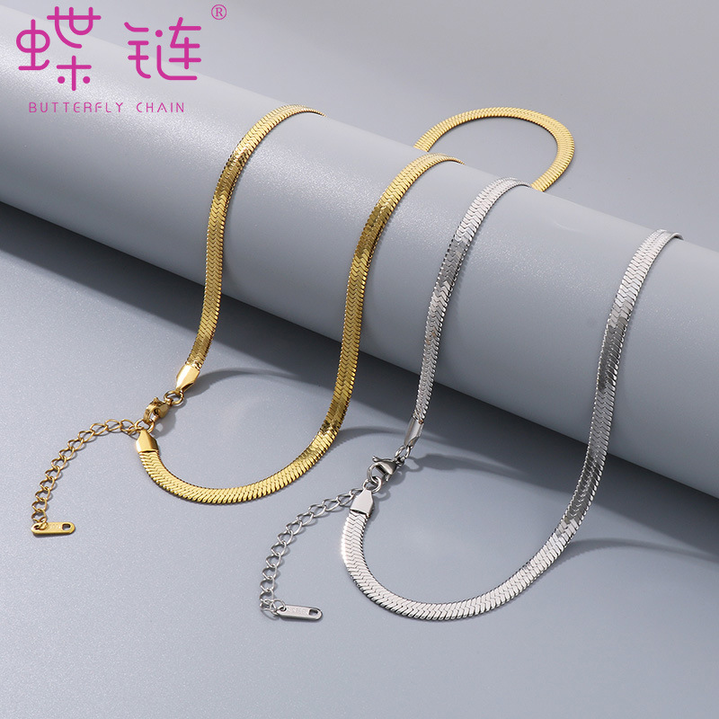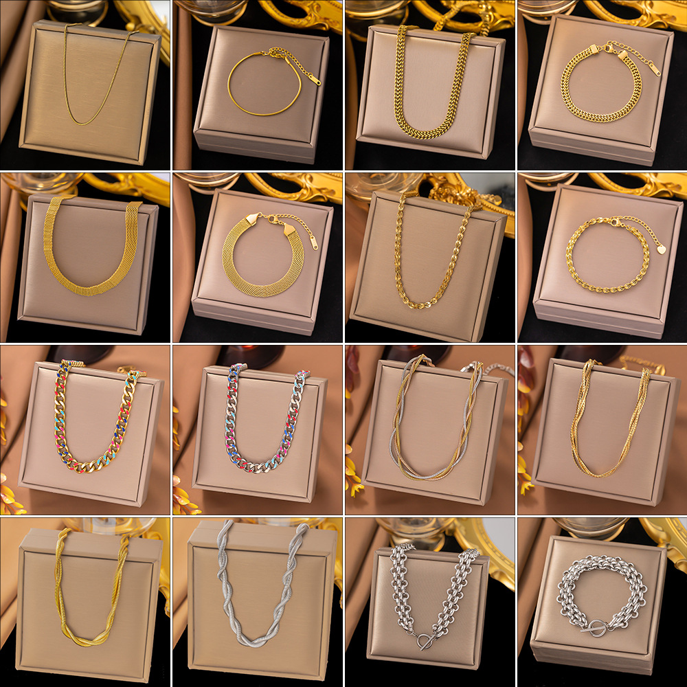 [naked chain] Europe and the United States cross-border wholesale 2024 new 18k gold pressed titanium steel necklace bracelet simple Joker women