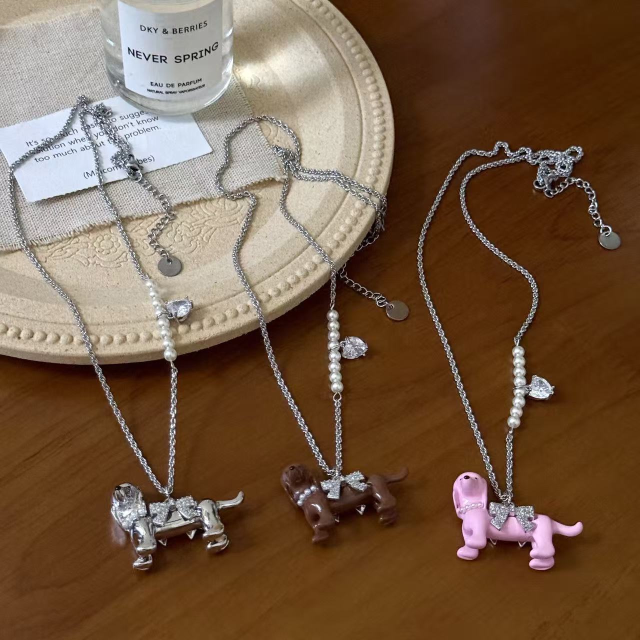 New Zhao Lusi Style Cute Puppy Bow Heart Zircon Necklace for Women Niche High-End Versatile Collarbone Chain