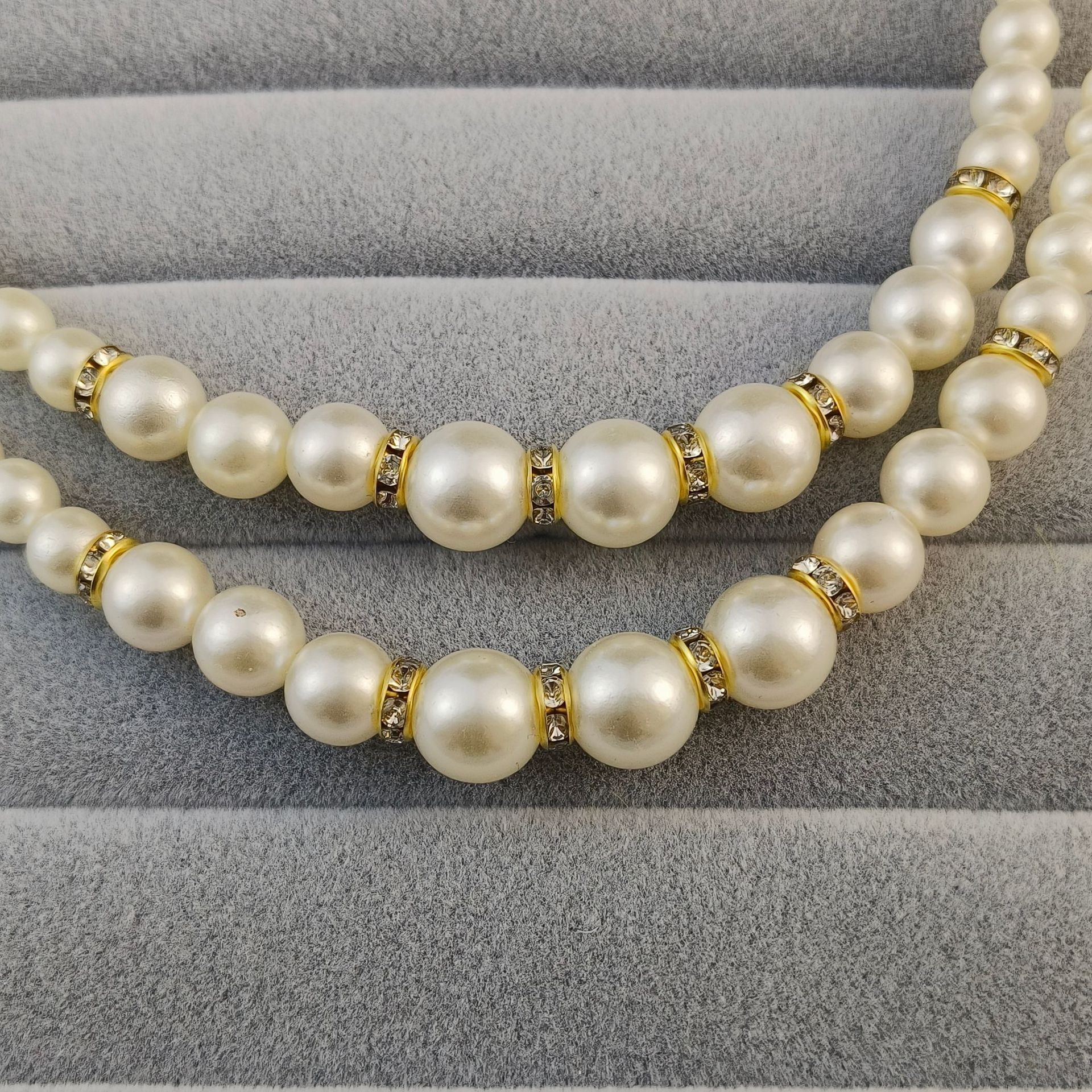 Fashionable, Simple and Versatile Abs Imitation Pearl Women's Double-Layer Imitation Pearl Glass Diamond Spacer Spacer Women's Necklace Wholesale