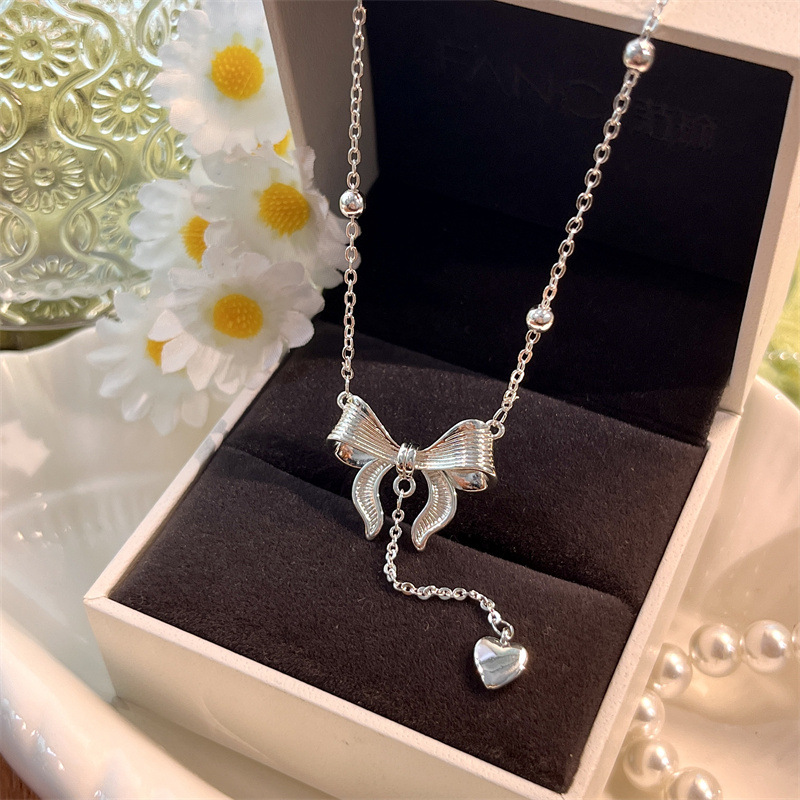 S999 Silver-Plated Fugitive Princess Necklace Women's Car Flower Super Flash Tassel Heart Pendant Sweet Lady Clavicle Chain Necklace