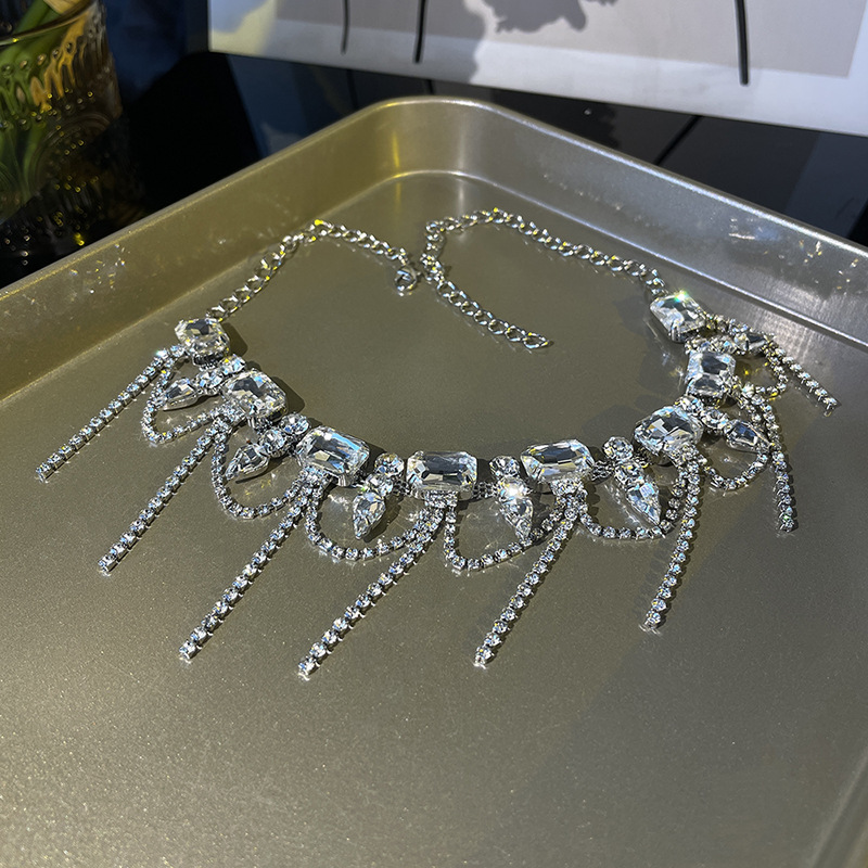 Full diamond high-grade personalized tassel necklace design Diamond-embedded Internet celebrity elegant clavicle chain fashion dress accessories for women