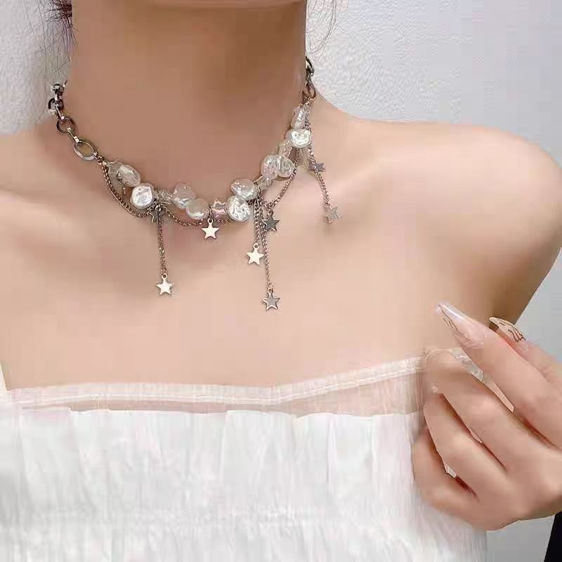 Fall in Love with Baroque! Niche Design Star Tassel Pearl Necklace Feminine Clavicle Chain New Neck Necklace Summer