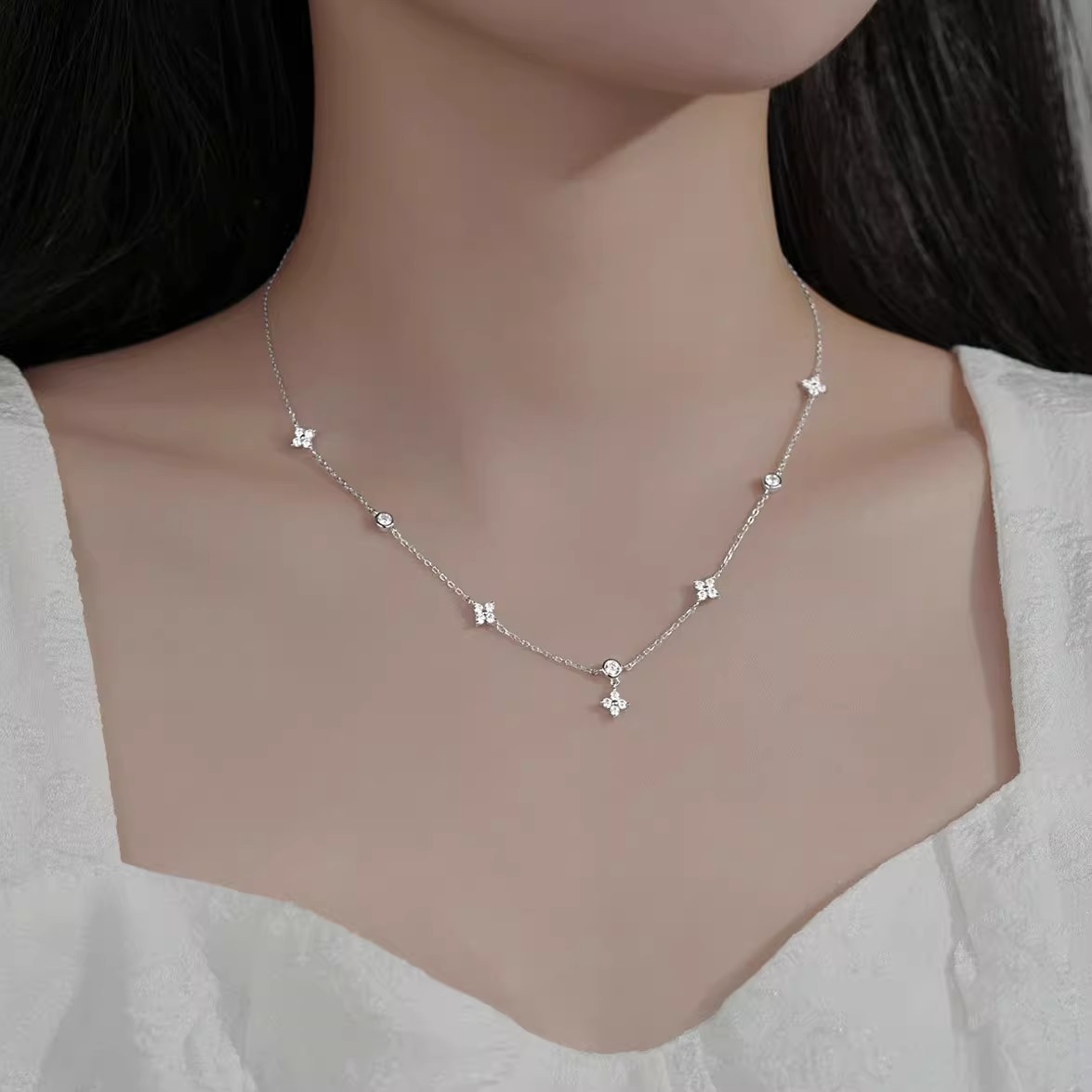 Korean and Japanese New Style Fairy Angel Diamond Necklace for Women, Simple and Elegant, Light Luxury Autumn and Winter Collarbone Niche Sweater Chain