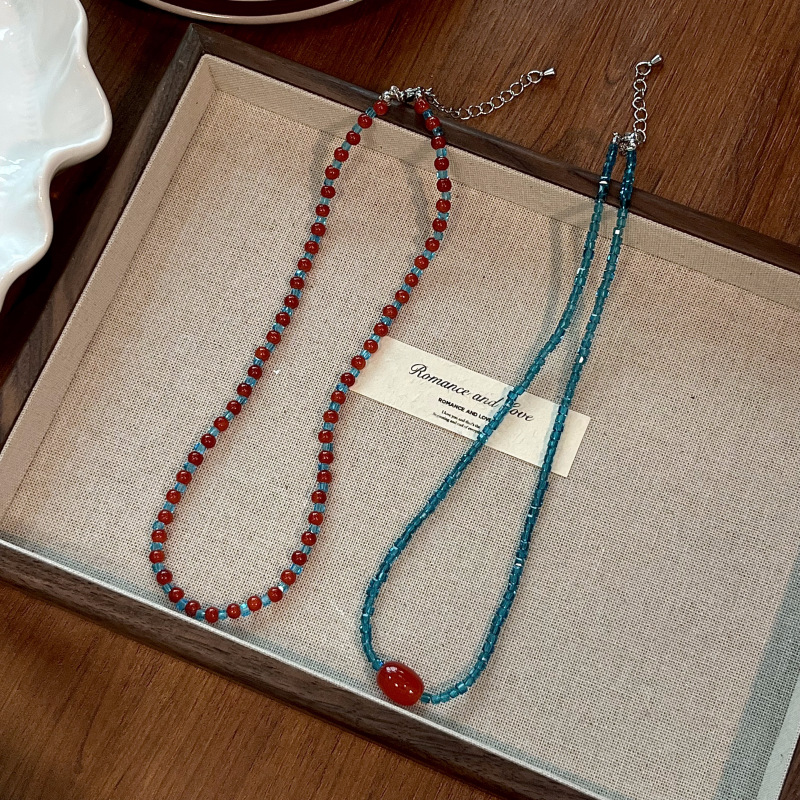 Vintage Chinese Style Beaded Stitching Necklace Women's Light Luxury Niche Exquisite Natural Collarbone Chain Accessories High-grade Necklace Chain