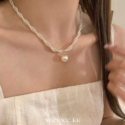 French Retro Double-Layer Pearl Twist Neck Necklace Clavicle Necklace Women's Pearl Pendant Light Luxury Simple Versatile Necklace