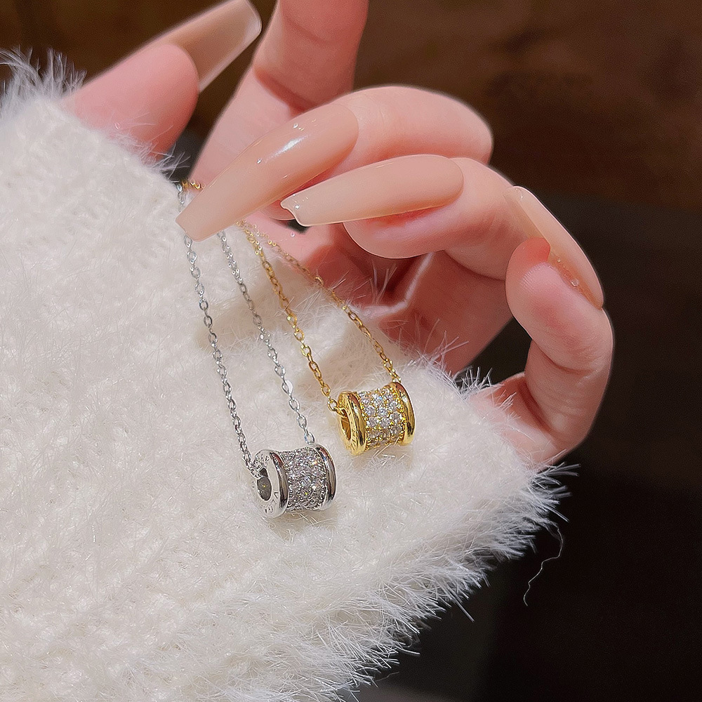 Wen Jian double ring necklace women's titanium steel diamond clavicle chain net red fashion rose gold necklace live factory