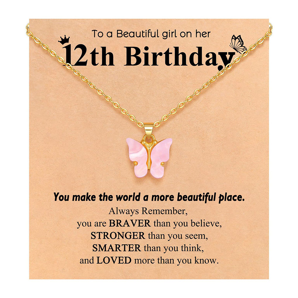 Women's Butterfly Necklace Gold Acrylic Pink Butterfly Pendant for Daughter Birthday Gift Clavicle Necklace Jewelry