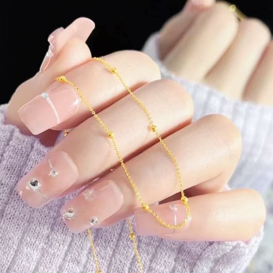Korean-Style Minimalist Layered Gold Bead Clavicle Chain for Women, Trendy Ins Light Luxury Necklace, Snake Bone Chain, Bare Chain, Plain Chain, Bead Chain
