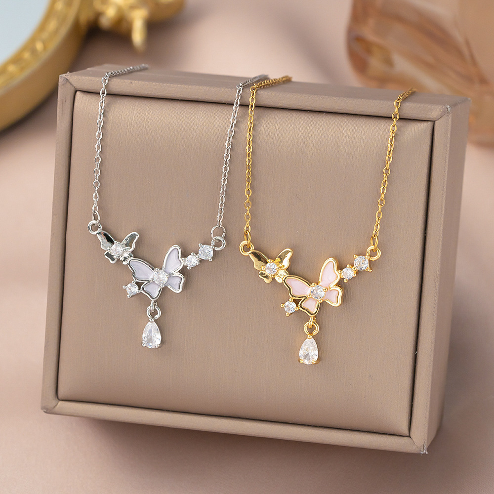 Exquisite, Sweet and Dreamy Drip Glaze Butterfly Tassel Micro-Embellished Necklace, Feminine and High-End New Girl's Heart Clavicle Chain