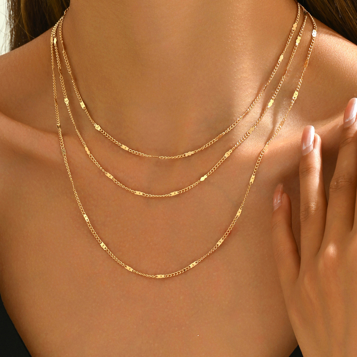 Cross-Border Hot Selling Simple and Personalized Gold Multi-Layer Chain Necklace Women's Thin Chain Gold Multi-Layer Stacked Necklace Wholesale