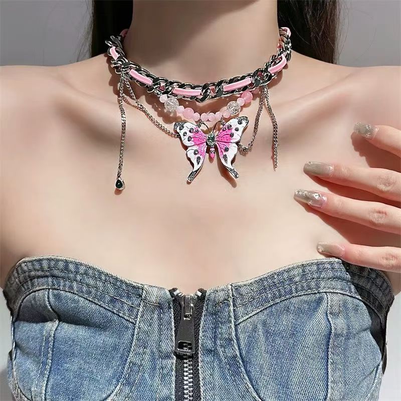 Red Velvet Butterfly Tassel Necklace for Women, Sweet and Cool Sexy Elegant, Fashionable and Exaggerated Niche Accessible Luxury Design Clavicle Chain