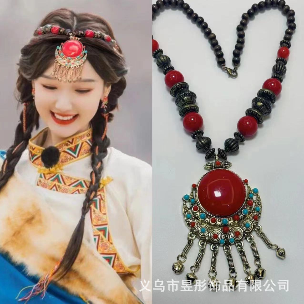 European and American cross-border turquoise necklace women's retro Bohemian ethnic style rectangular lightning pendant necklace wholesale