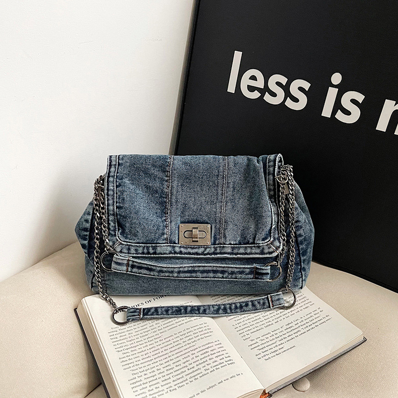 Vintage Casual Denim Bag Women's 2024 New High-end Chain Shoulder Bag Large Capacity Commuter Tote Bag
