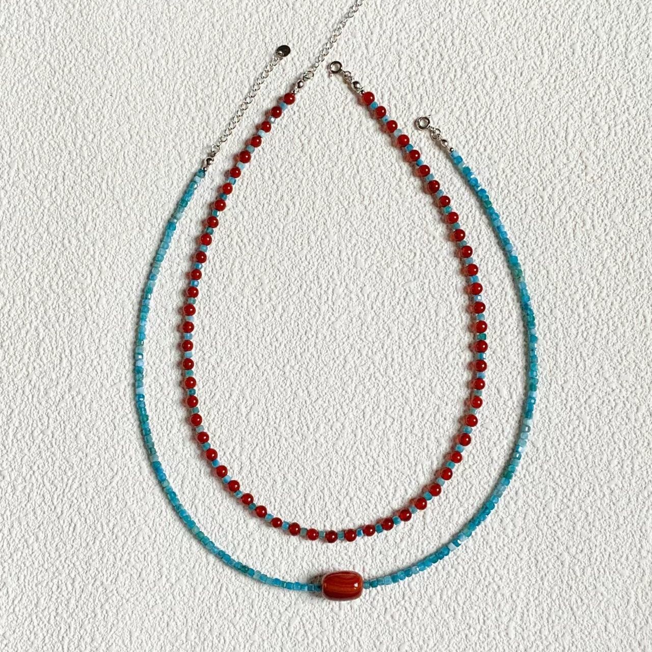 Flowers ~ Retro Atmosphere Clavicle Chain Women's Red and Blue Beaded Ins Niche Design Elegant Neck Chain Necklace