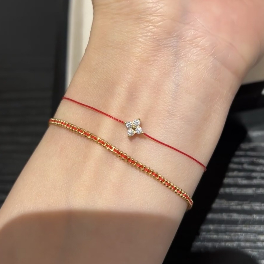 French Red Rope Four-leaf Clover Hand Rope Women's 18k Gold Plated Light Luxury Niche High-end Handmade Benmingnian Couple Bracelet
