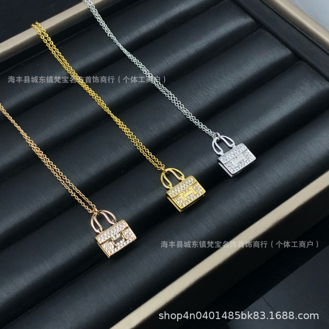 High-End New Model Bag Necklace for Women H Kangkang Bag Pink Diamond Collarbone Chain Factory Direct Sale Tiktok Live Streaming Hot Item