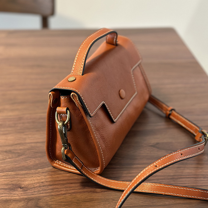 Vintage Genuine Leather Small Bag Women's 2024 Autumn and Winter New Small Square Bag Cowhide Casual Shoulder Crossbody Bag Top Layer Cowhide