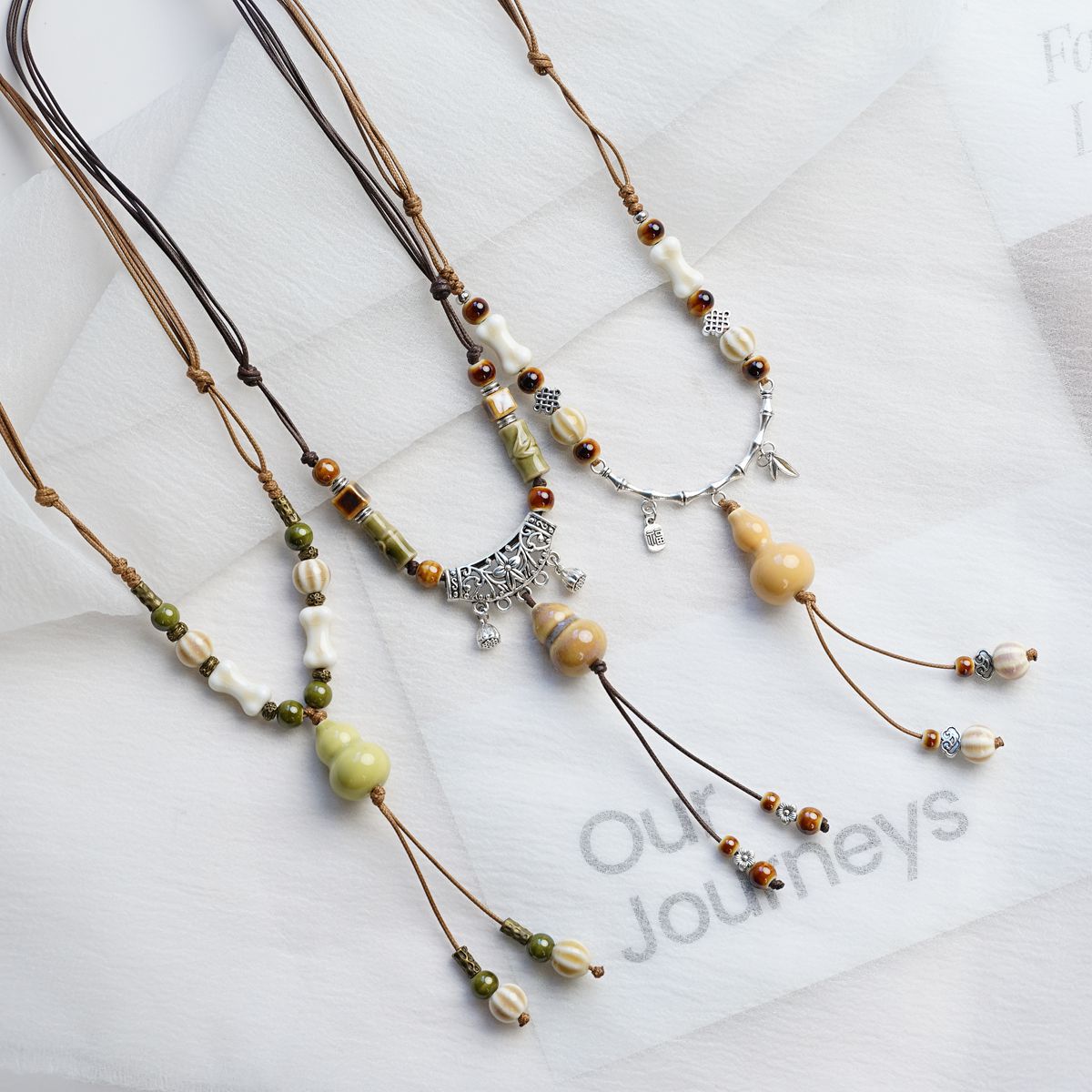 Autumn and Winter New Jingdezhen Ceramic Adjustable Gourd Necklace Sweater Chain Antique Style Versatile Accessories with Sweet Elegant