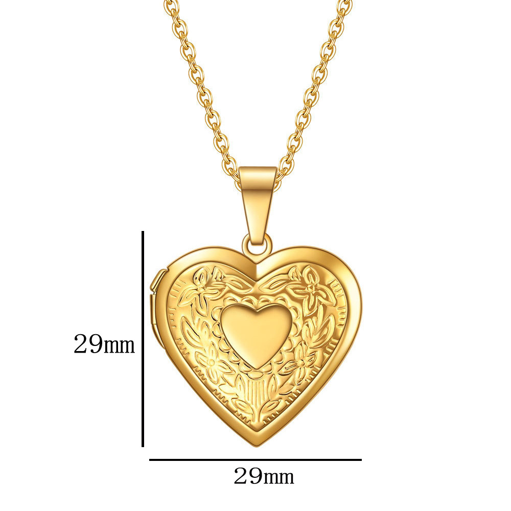 Heart-Shaped Photo Box Pendant, Simple and High-End Necklace for Women, Fashionable and Light Luxury Embossed Peach Heart Photo Frame Box Necklace