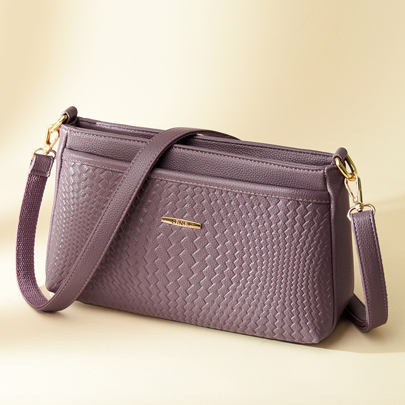 Bag Women's 2024 New Texturized Soft Leather Woven Single Shoulder Crossbody Simple Multi-layer Large Capacity Middle-aged Mother Bag