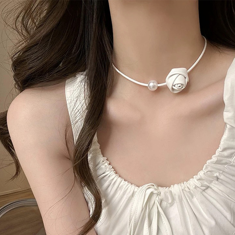 Advanced Atmosphere Sense Rose Pearl Necklace Choker Niche Necklace Women's 2024 New Style Elegant Collar Accessories