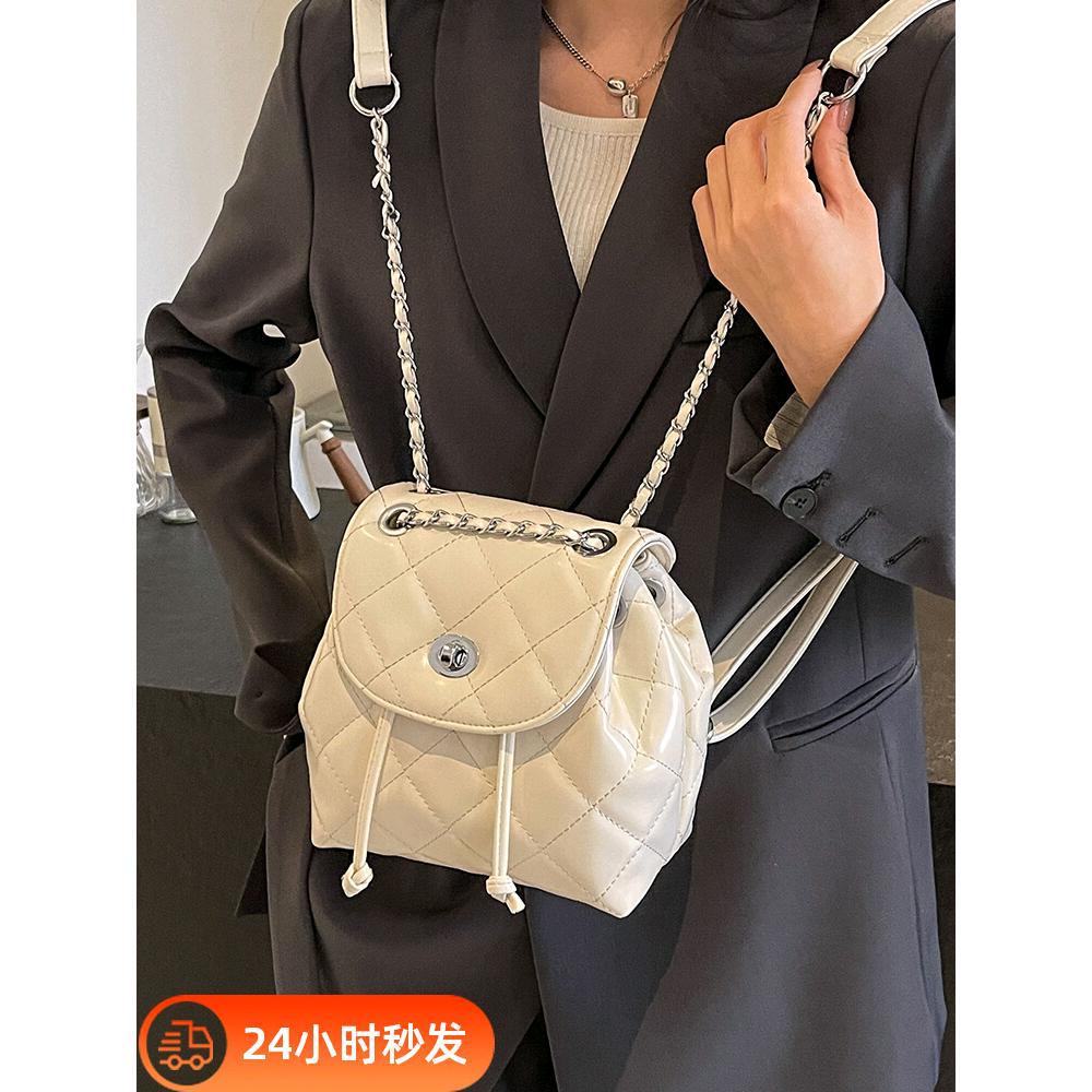Cross-border Backpack Women's Fashion 2024 New silver High-end Niche Design Chain Bag Small Women's White