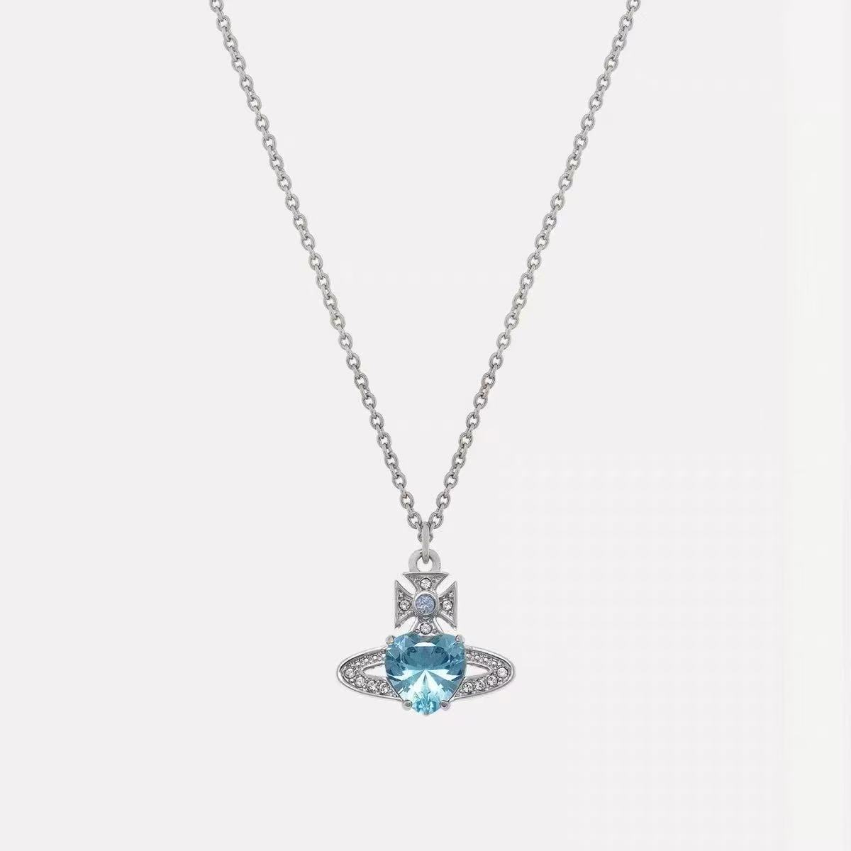 High-End Empress Blue Heart Saturn Necklace for Women Classic Full Diamond Heart Niche Planet Pendant Collarbone Chain