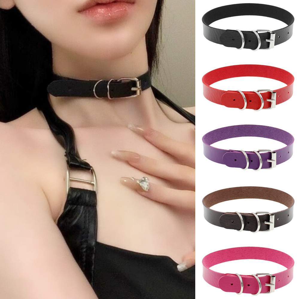 Wholesale Retro Harajuku Punk Rock PU Leather Collar Neck Strap Collarbone Necklace Women Trendy Novel Couple Bracelet
