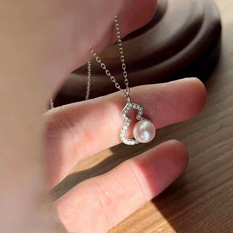New Style 925 Sterling Silver Natural Freshwater Pearl Gourd Necklace Women's New Chinese Style Retro Life Year Pendant High-grade Sense
