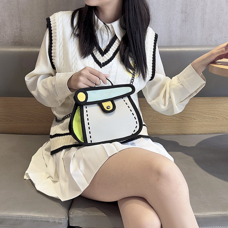 Niche Design Cartoon Bag for Women 2025 New Canvas Handbag Cute Two-Dimensional Chain Bag Crossbody Bag