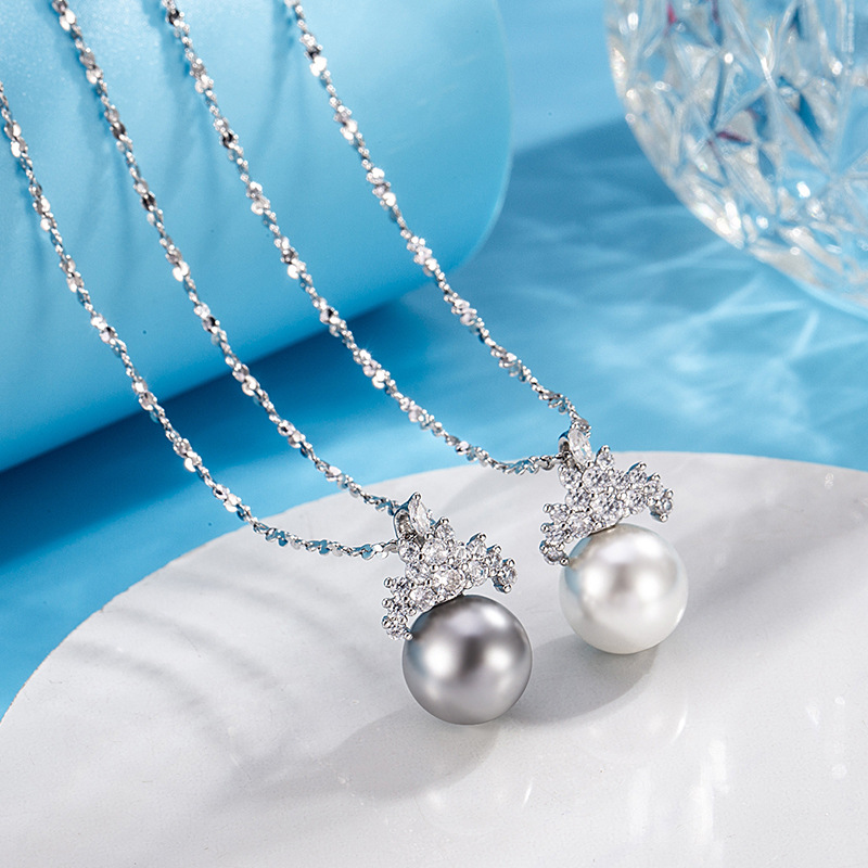 Exquisite French Entry Luxury Ice Queen Crown Imitation Shijia Pearl Clavicle Chain High-end Necklace Women's Niche All-match