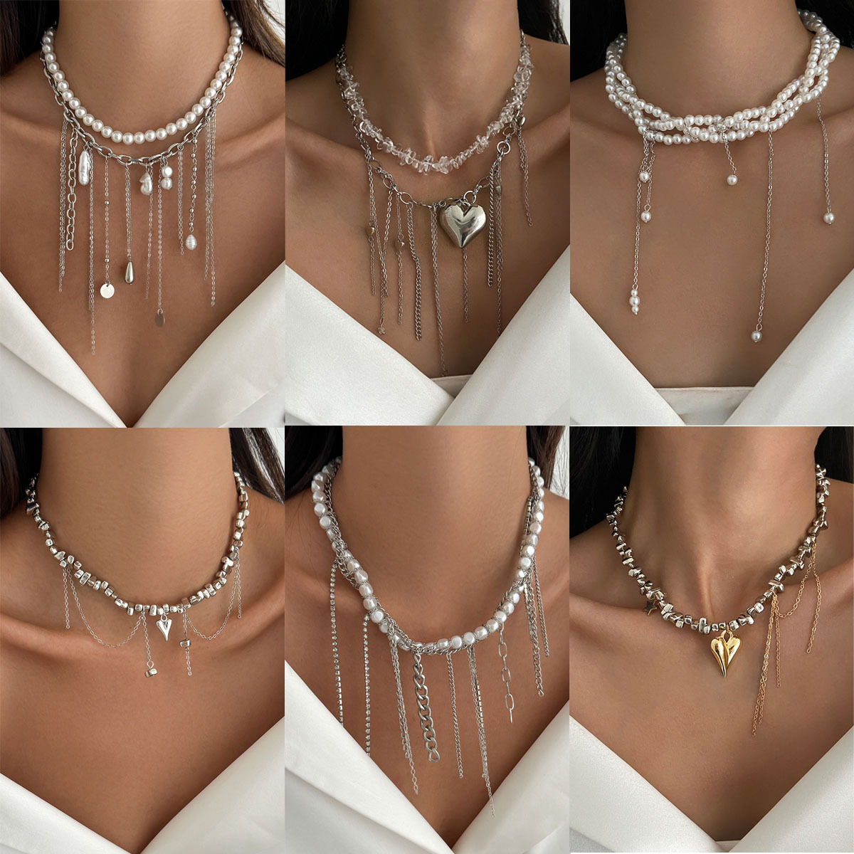 European and American Cross-Border Cream Sweet Style Heart-Shaped Pendant Clavicle Chain Personalized Asymmetrical Turquoise Imitation Pearl Necklace for Women