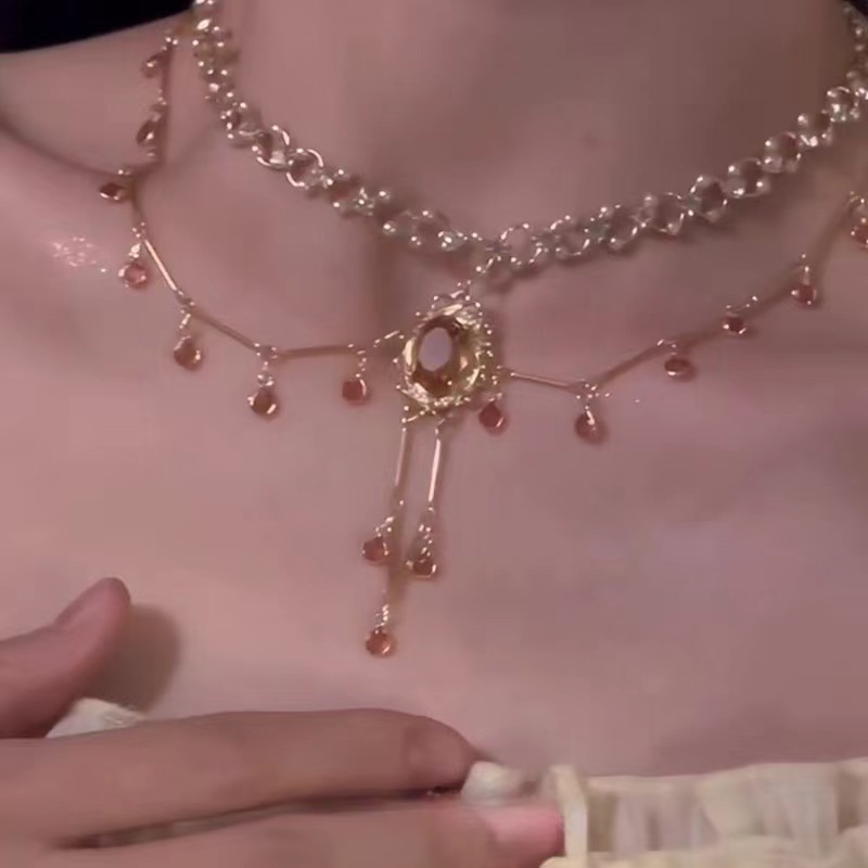 French light luxury palace tassel zircon necklace niche design fashion Joker female clavicle chain jewelry wholesale