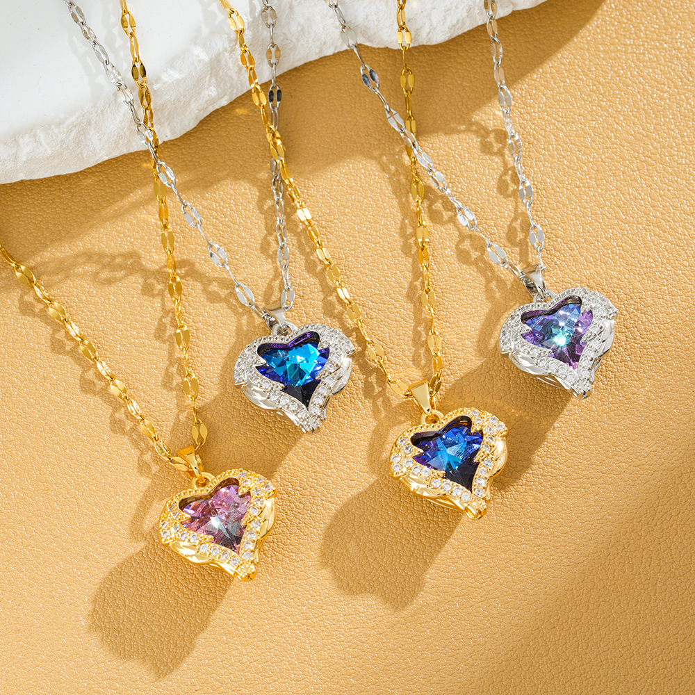Cross-border colorful ocean heart titanium steel necklace female Korean version of light luxury girlfriends girlfriend clavicle chain jewelry manufacturers wholesale