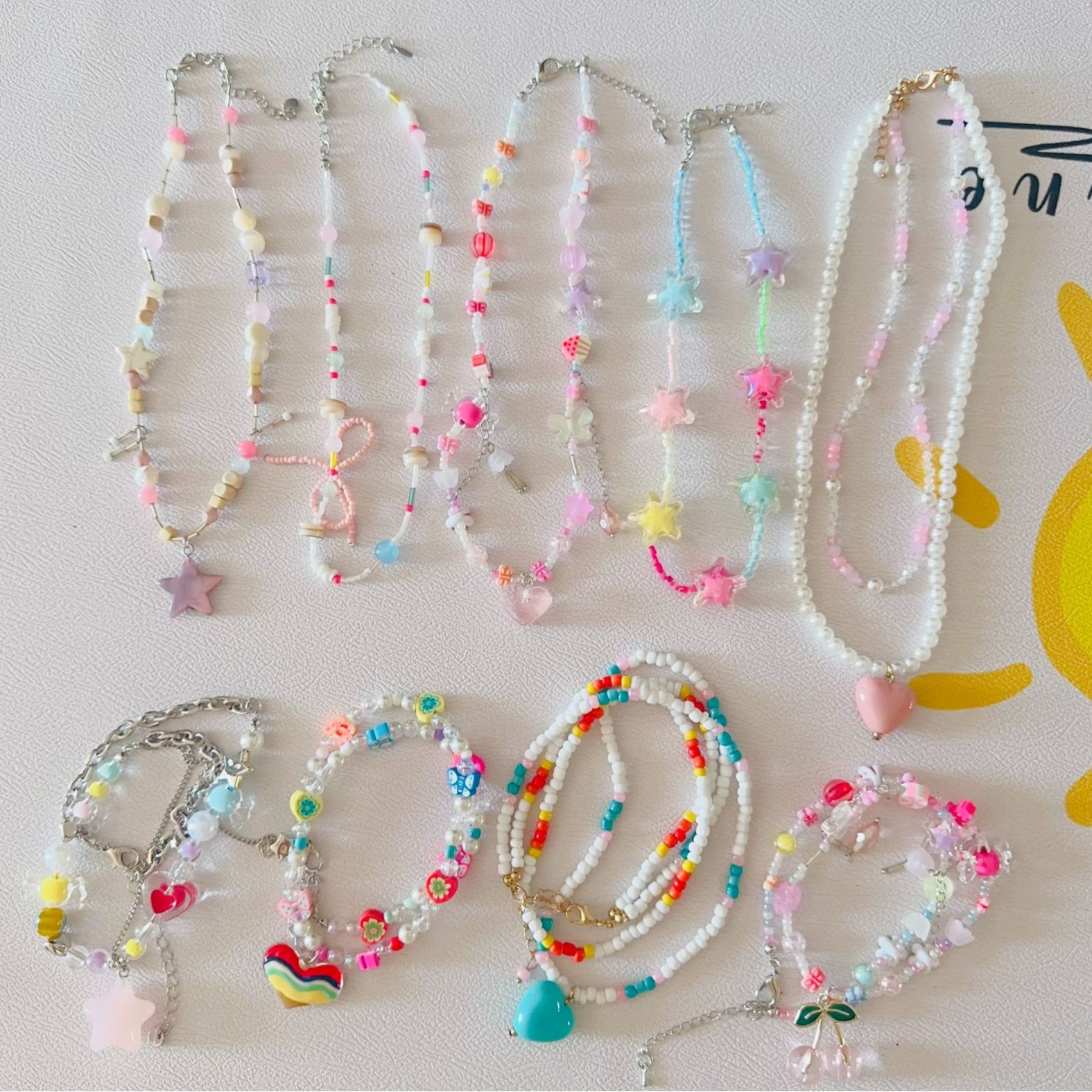 Summer Dopamine Color Bow Necklace Women's Design Sense Rice Bead Clavicle Chain Niche Sweet Beaded Accessories